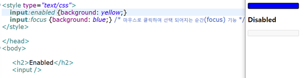 2) :disabled = 비활성화 시키는 태그 (이벤트에 의해서 활성화 시키도록 하는 태그)