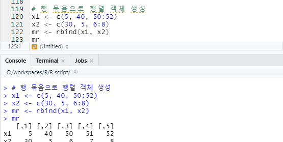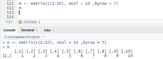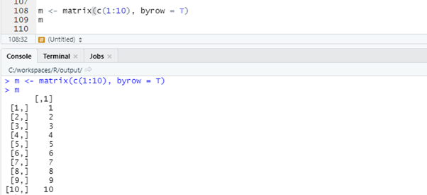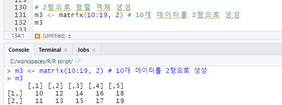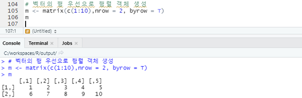 만약 nrow나 ncol 가 없으면 byrow는 의미가 없이 그대로 적용됩니다.