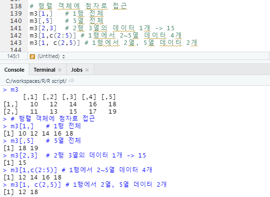 Vector 데이터는 a[1, 2] = error / ( , ) 사용할 수 없습니다. 그 이유는 Matrix 의 개념으로 ( , )가 연결 되기 때문입니다. (통일된 컨셉으로 인함)