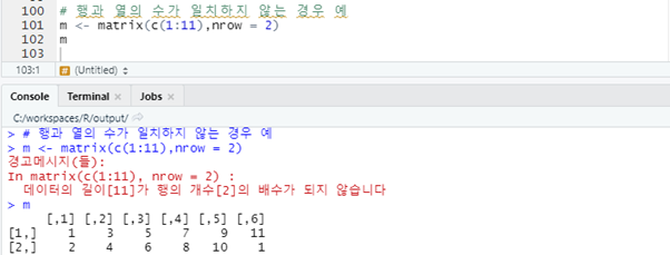 행과 열이 일치되지 않을 때, 원하지 않는 내용이 들어가서 잘못된 결과 도출이 될 수 있습니다.