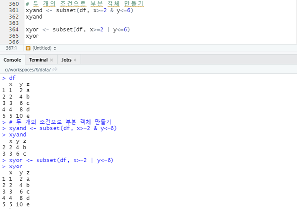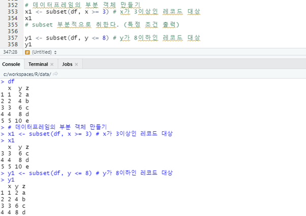 # subset : 부분 객체 만들기 (비교 연산자 활용)
