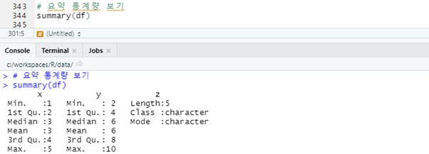 # summary 함수 : 수치형 데이터의 특징을 빠르게 제공합니다.