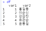 *read.csv , read.table, read.xlsx 반환형 = data.frame